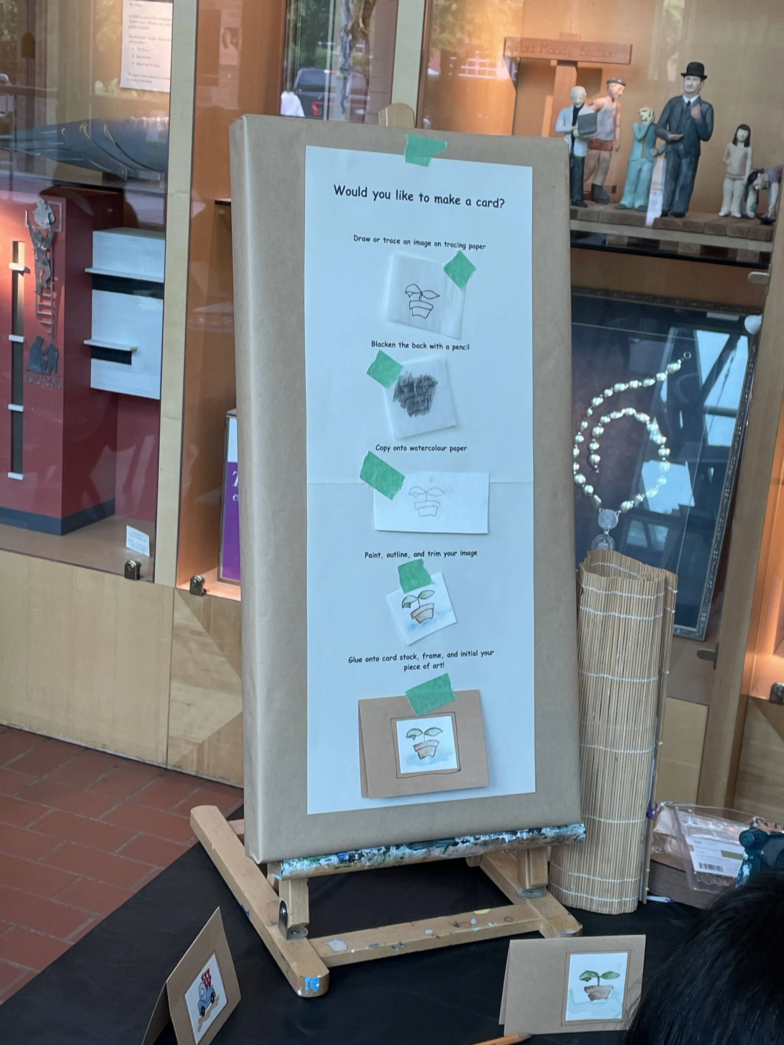 I was asked to demonstrate simple card making. The library provided materials for those interested in participating. Staff set up two tables with supplies. It was a busy four hours!